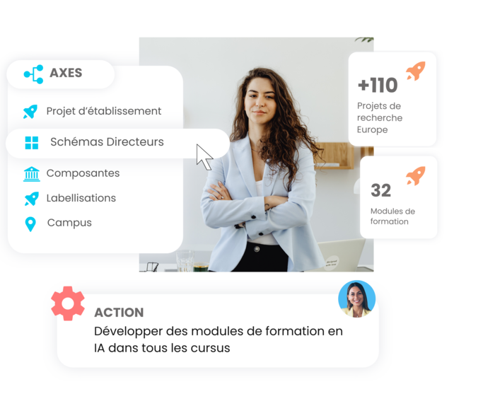 Structurez votre projet d’établissement, vos schémas directeurs et vos objectifs opérationnels dans une vision partagée. Alignez vos équipes et suivez l’avancement de vos actions en toute transparence.